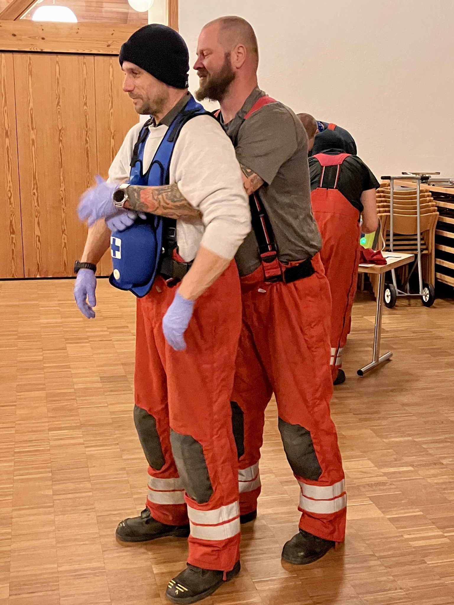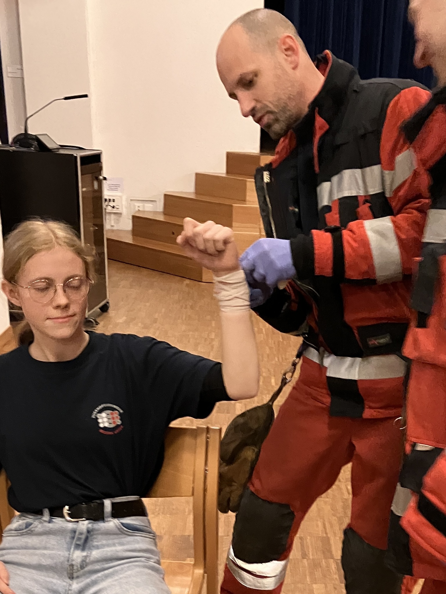 An zwei Abenden wurde diese Woche die Mannschaft der Feuerwehr der Feuerwehr Dübendorf - Wangen-Brüttisellen in der ersten Hilfe ausgebildet. An verschiedenen Posten wurde die Herzmassage trainiert aber auch wie man mit Verbrennungen und Schnittwunden umgeht. Wie funktioniert schon wieder ein Druckverband? Was muss man tun, wenn etwas im Hals stecken blieb? Oder wie erkenne ich, dass jemand einen Schlaganfall hat? Was soll man tun, wenn eine Person starke Verbrennungen aufweist? Unter den fachkundigen Augen des Sanitätsteams galt es verschiedene Situationen zu bewältigen. Ein grosses Dankeschön an die