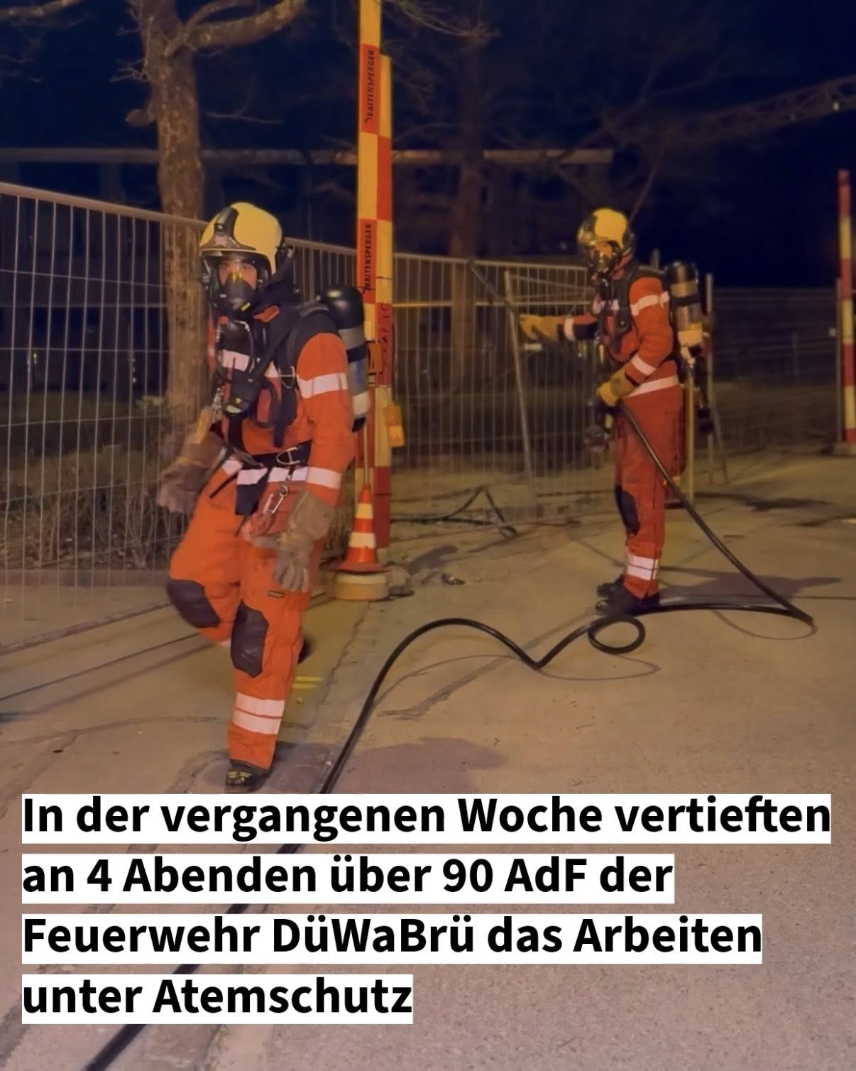 In der vergangenen Woche übten die Atemschutzgeräteträger der Feuerwehr Dübendorf - Wangen-Brüttisellen die Bekämpfung eines Brandes in einer weitläufigen unterirdischen Anlage. Das korrekte Vorrücken mit der Löschleitung bei wenig bis keiner Sicht erfordert gute Teamarbeit und Koordination durch den Bereichsverantwortlichen (VB). Die gewonnenen Erkenntnisse aus der Übungsanlage können 1:1 bei Einsätzen in grossen Tiefgaragen oder Gebäuden mit komplexen Kellerräumlichkeiten angewandt werden.